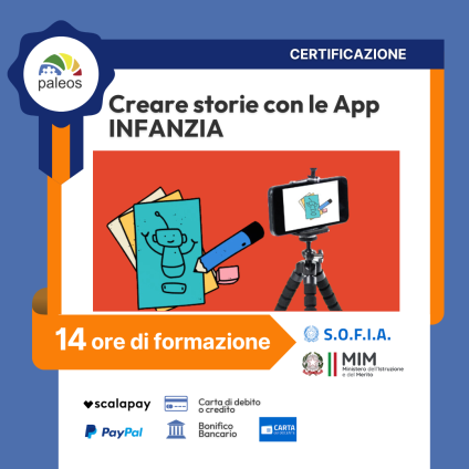 Il corso riconosciuto MIM “Creare storie con le app ā INFANZIA” ĆØ pensato per aiutarti a realizzare storie e lezioni multimediali per i bambini della scuola dellāinfanzia nel minor tempo possibile. Imparerai a utilizzare quattro tecniche diverse per creare storie digitali, sia da smartphone che da PC.