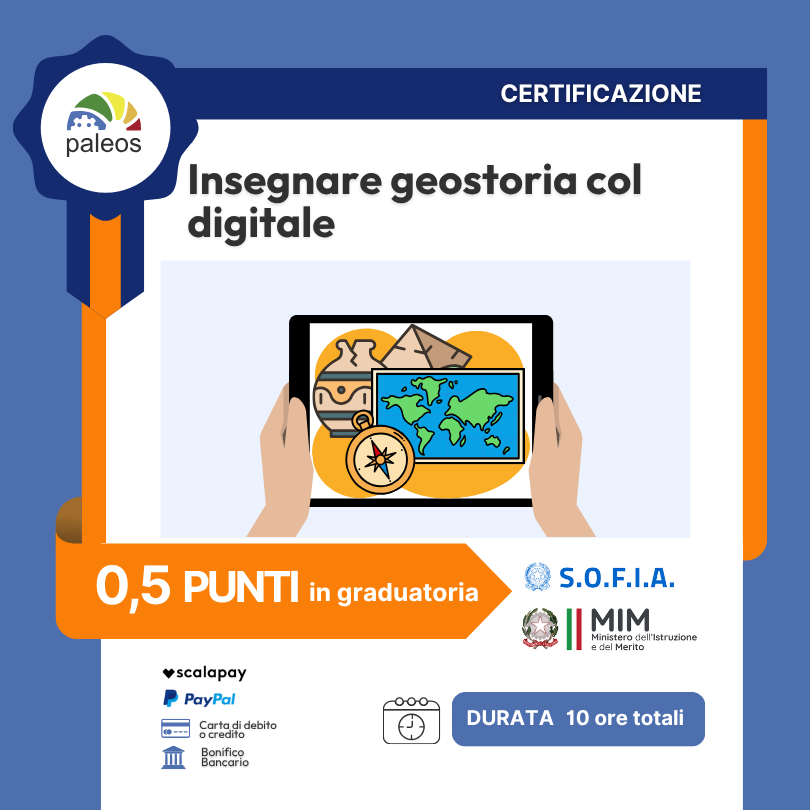 Corso docenti riconosciuto MIM sulle tecnologie digitali per insegnare geostoria.
